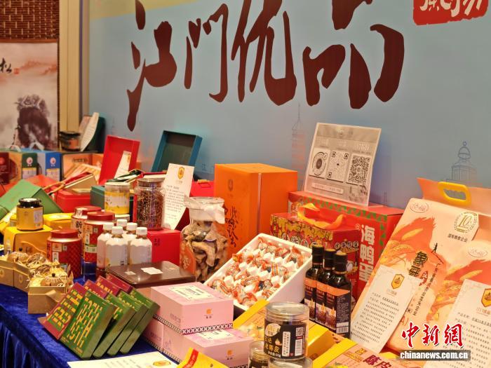 1月23日,江门五邑海外联谊会第六届理事大会上展示众多江门优品。中新社记者 郭军 摄
