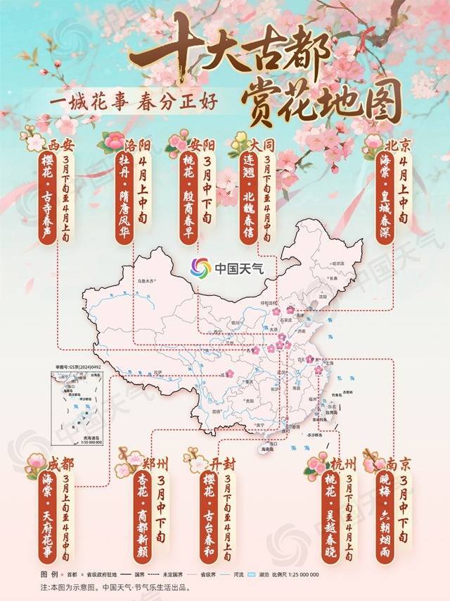 中国天气网讯 春分日,昼夜均,寒暑平。自此昼渐长、暖渐浓,春天的脚步从南向北,坚定前行。风有信,花不误。北京海棠、洛阳牡丹、南京晚梅……这些古城的春日信使,循着千年文脉次第绽放。中国天气网推出“春分古都赏花地图”,带你赴一场与古都的千年之约。